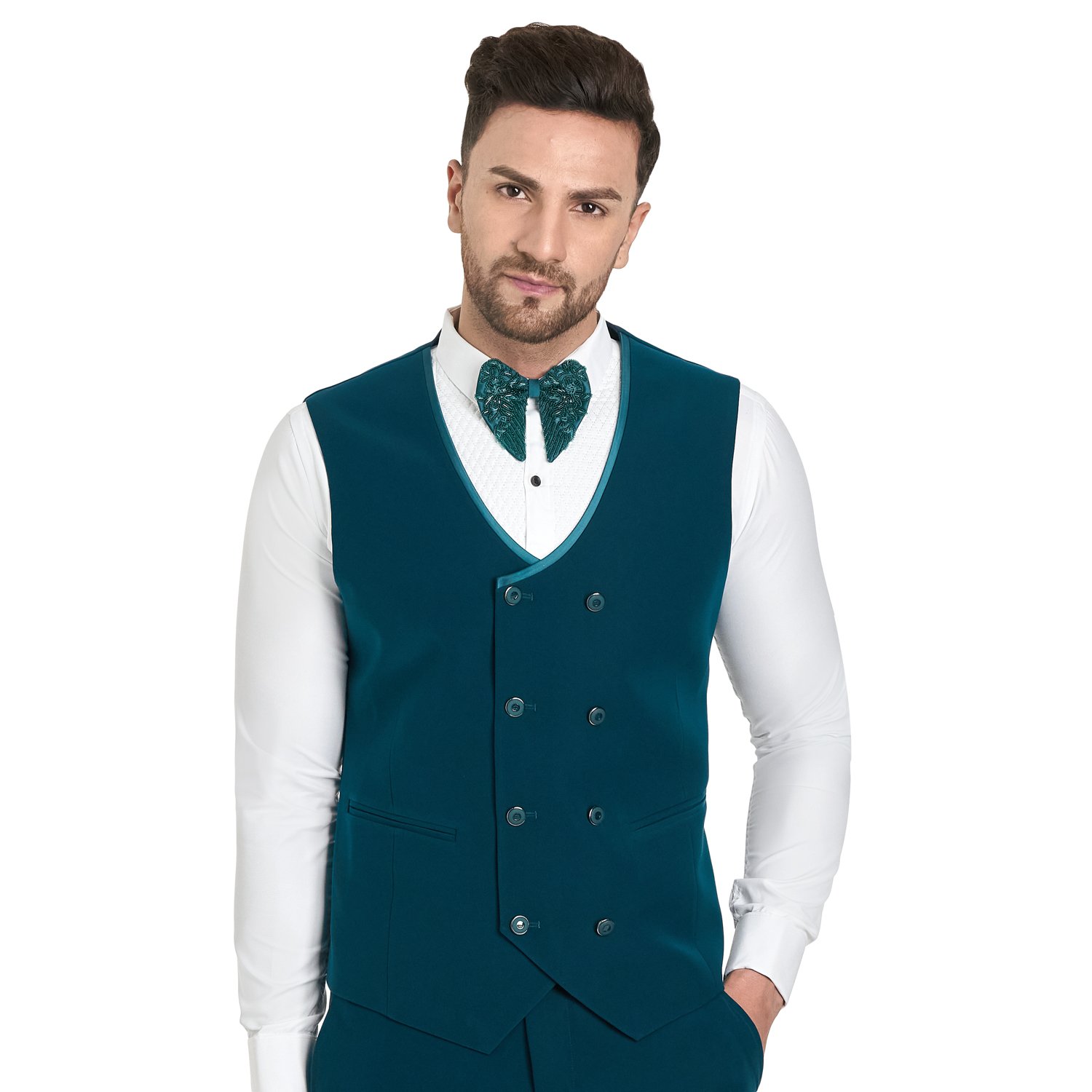 It includes 1 brooch, 1 pocket square, 1 tie, White tuxedo shirt & 1 Emb. bow, designer metal buttons.