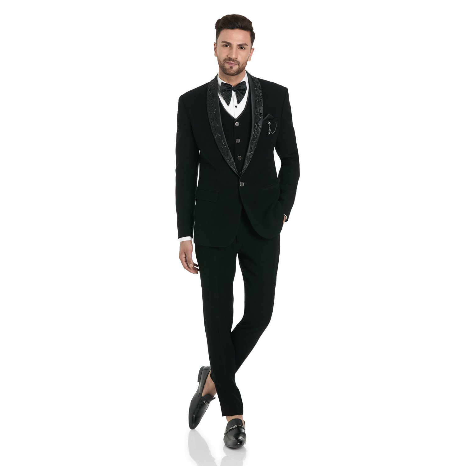 • It includes 1 brooch, 1 pocket square, 1 tie, White tuxedo shirt & 1 Emb. bow,  designer metal buttons.