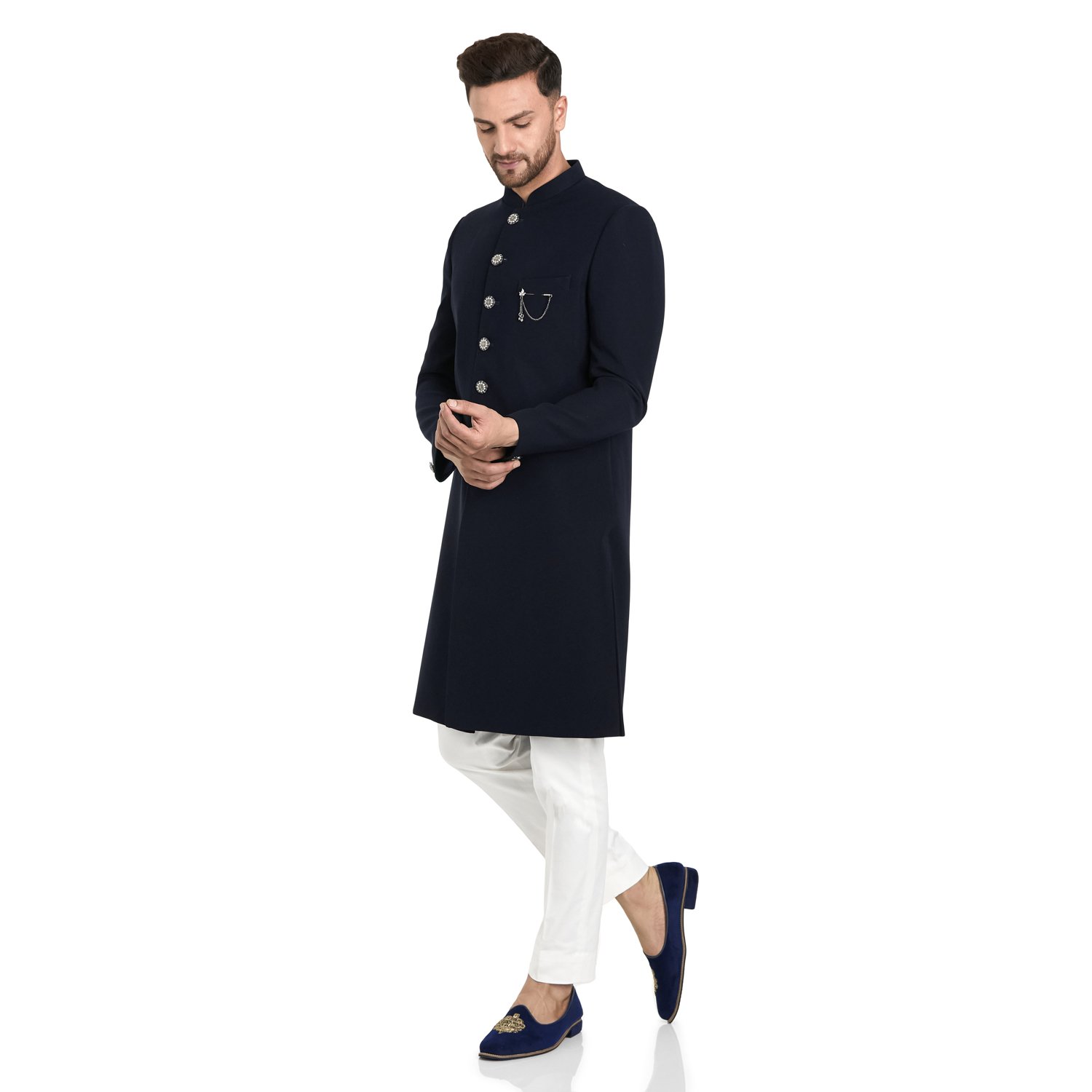 • This classy Indo-Western is tailored with premium Italian fabric.