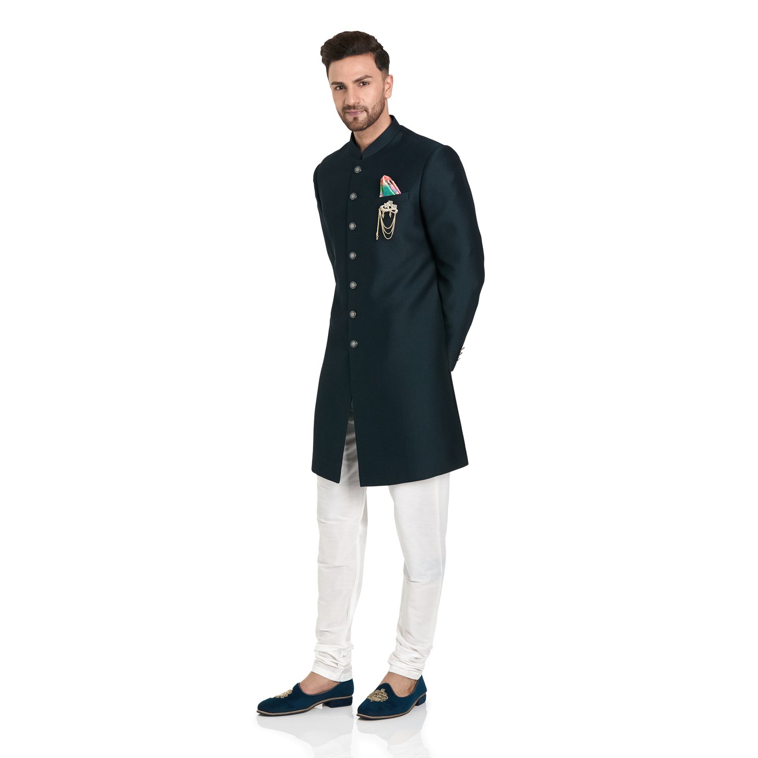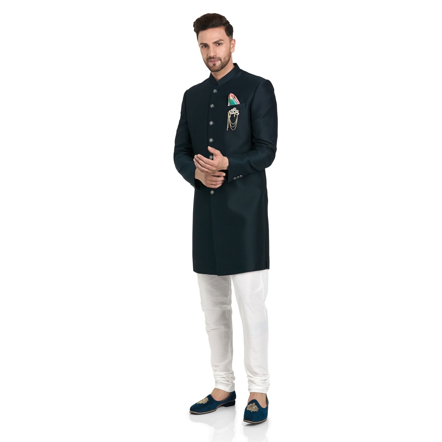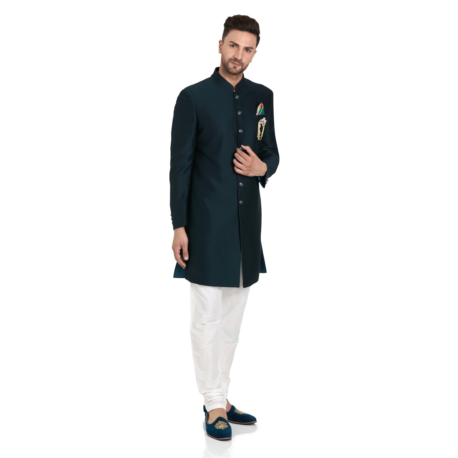 At Rajputana Men’s Store, we are committed to delivering the perfect fit. We offer free alterations on all garments to ensure you look your regal best. Our standard sizes can be tailored to your preferences at no extra cost.